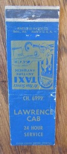 TAXI CAB: LAWRENCE CAB (1940s MATCHBOOK MATCHCOVER) -F24