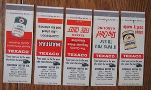 TEXACO GAS STATION MATCHBOOK SET OF 5: TURNER'S (LIPSCOMB, TEXAS) (1960) -F24