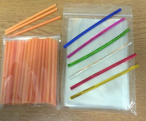 50 x 89mm ORANGE PLASTIC LOLLIPOP STICKS CAKE POP KIT INCLUDES BAGS & TWISTTIES