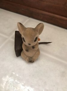 VINTAGE JOSEF ORIGINALS FLOCK OR FUZZY Mouse with Chocolate Wedge - JAPAN