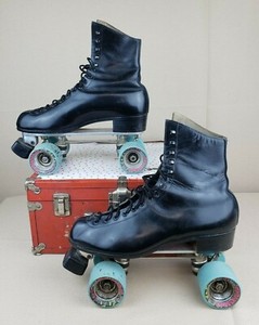 Vintage Chicago Black Roller Skates Blue Speedhead Wheels Men's Sz 8 w Red Case
