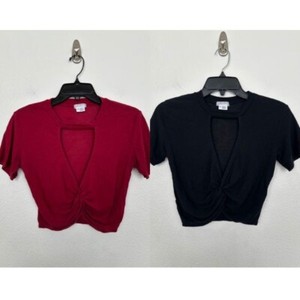 Urban Outfitters Cooperative Cut Out V-Neck Twist Crop Shirt Black Burgundy XS