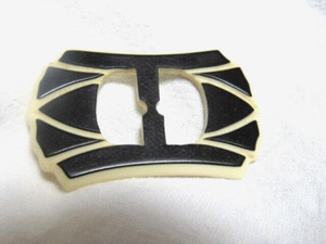 Art Deco Sash Belt Buckle Black on Cream Plastic