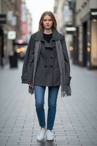 New Calvin Klein Women Sz 14 Double Breasted Grey Wool Blend Peacoat Pea Coat