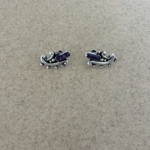 Mexico Silver Deco Modernist Sterling Silver Amethyst Earrings Screw Back Taxco?