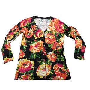 Isaac Mizrahi Live Floral Print Cardigan Sweater Womens Medium V-Neck