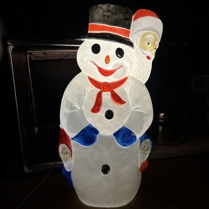 VTG 30” Christmas Blow Mold Snowman Santa Elf Lighted Yard Decor Union Products