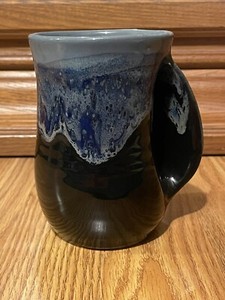 Neher Pottery Right Hand Warmer Mug Blue Black Signed