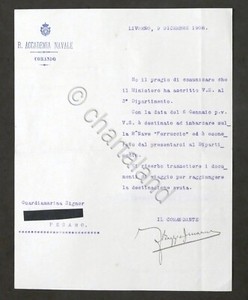 Lettera con autografo comandante Regia Accademia Navale - Livorno - 1908