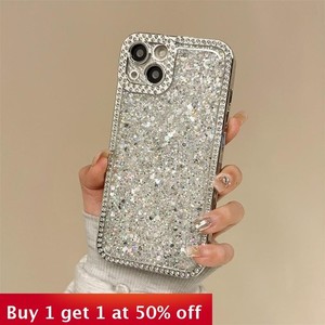 For iPhone 16 Pro Max 15 14 13 12 XR XS Phone Cover Glitter Silver Trendy Case