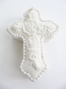 NEW Religious White Cross 2 PC Porcelain Bisque 6” Accessory Box