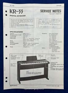 Original Roland Digital Keyboard Service Notes - Manual / KR-33