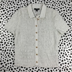 J.CREW FACTORY NWT Women's Smocked White Button-Up in Cotton Voile LARGE BU278