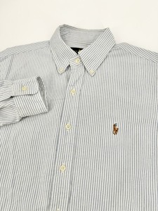 Polo Ralph Lauren Oxford Shirt Men’s Large Blue White Striped Monogram Preppy