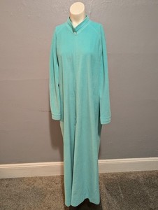 Vintage Vanity Fair House Coat M Full Length Aqua Blue Granny Core Retro 70s Zip