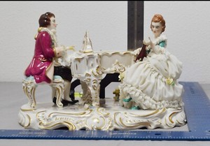 Mueller Volkstedt Dresden Lace Figurine Piano Man Mandolin Woman SOME DAMAGE RM 1,262.66Was: RM 2,104.46