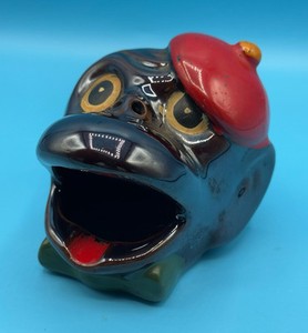 Rare Vintage Fab Hipster Smoking Monkey Head Ceramic Ashtray 4” Tall