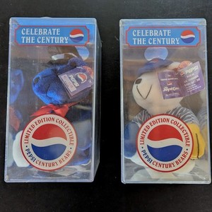 Rare Bear Celebrate The Century Pepsi Bear #4190 #2036 White Blue Cases 2 Set