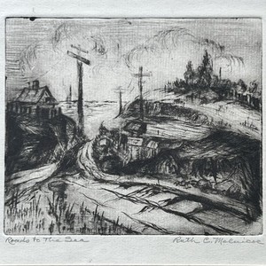 1940s Etching SAN FRANCISCO ROAD TO SEA Pencil-Signed LISTED Ruth Melnicoe VTG