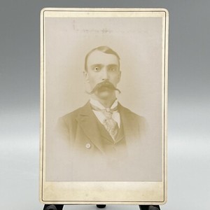 Man w/ UNRULY HANDLEBAR MUSTACHE & CRAVAT ASCOT TIE Antique Cabinet Card Photo