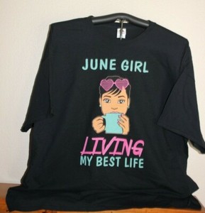 JUNE GIRL LIVING MY BEST LIFE T-Shirt 4XL in Black