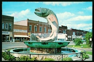 Michigan, Kalkaska - National Trout Memorial Fountain - Mailed 1968