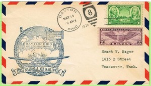 #C23 FDC National Air Mail Week NAMW May 14 1938 Dayton OH, Marshfield OR