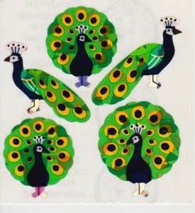 Sandylion Shiny PEACOCKS Scrapbooking Stickers. F31 Retired Design VINTAGE RaRe