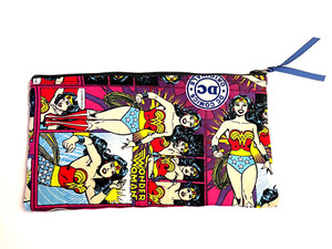 New Make Up Cosmetic Bag Handmade from Wonder Woman Print Fabric 10 x 5.5"