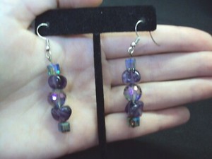 dainty dark gray + purple abalone sea shell chip + silver tone dangle earrings