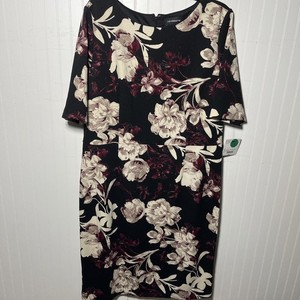 Liz Claiborne Dress Size 18 Black Garnet Floral Zip Back NWT