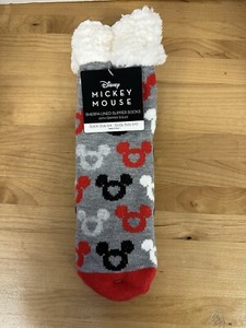 NEW Womens Disney Mickey Mouse Ears & Hearts Slipper Socks w faux sherpa