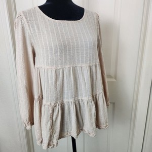 American Eagle Shirt Tiered Beige Open Back Babydoll Blouse Medium Boho Peasant