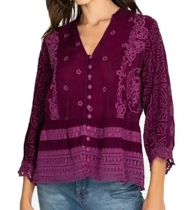 Johnny Was Polyvore Juniper Embroidered Blouse Jam Purple Womens Medium M