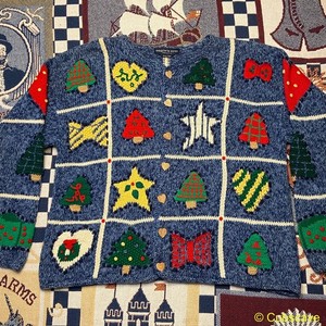 VINTAGE Eagle's Eye Christmas Cardigan Sweater Women's XL Extra Large Blue Knit