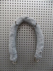 1 MANICO MANICI PER BORSA BORSE IN PELLICCIA ECOLOGICA PELO GRIGIO CON ANELLI AR