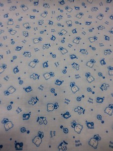 taglio di tessuto americano in pile con stampato orsacchiotto fondo azzurro