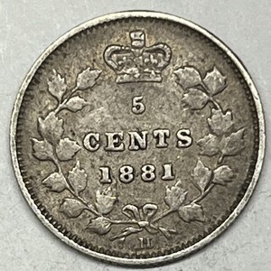 1881-H Canada 5 Cents Silver Coin. Absolute Gem Original Coin. Free Shipping !!