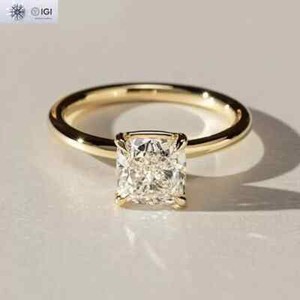 Lab Grown 2.01 Ct Diamond Solitaire Ring – E VVS1 CUSHION Cut CVD in 14K GOLD