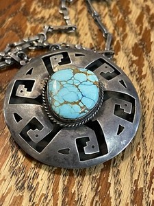 Vintage F Balladares B Mexico Sterling Turquoise Pin/Necklace Free Shipping