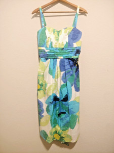 NWT Dress Barn Summer Dress Straps Blue Green Floral Pin Tuck Party Women's SZ 8