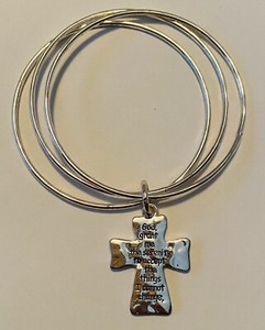 Silver Triple Bangle Bracelet With Cross Serenity Prayer Charm