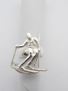 Skier: 925 SILVER Ring - Alpine Skiing - Ski - Slalom - Descent