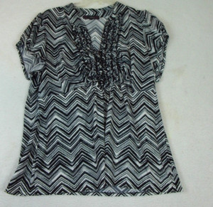 Heart Soul Shirt Women's 3X Ruffled V Neckline Cap Sleeve Chevron Cute Preppy