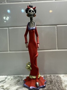 “Catrina” Day of the Dead, in Red Dress, Figurine, 7.75” Tall, PO- VG+