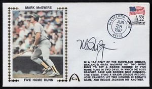 GATEWAY MARK McGWIRE AUTOGRAPHED "FIVE HOME RUNS" FDC POSTAL CACHET ENVELOPE