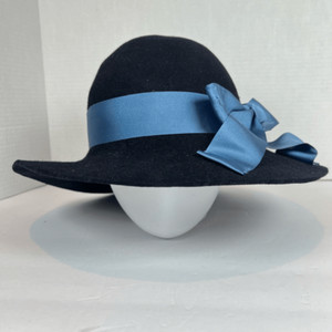 Vintage Lisa Battaglia Felt Hat Navy Blue Satin Bow Soft Rim Wool Derby