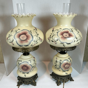 Vintage Set Gone With the Wind Large 3-Way Lamps Glass Shade Chimney Victorian