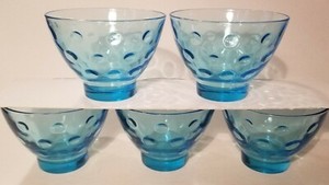 5 Vtg Hazel Atlas Capri Dots Champagne Glass Sherbet Berry Bowl 2 3/4" Blue 6oz
