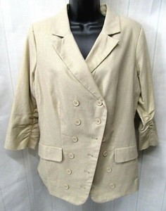 DASH by KARDASHIAN Size 10 Linen Blend Beige Gold Metallic 3/4 SL Blazer Jacket